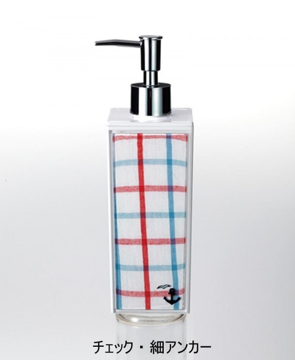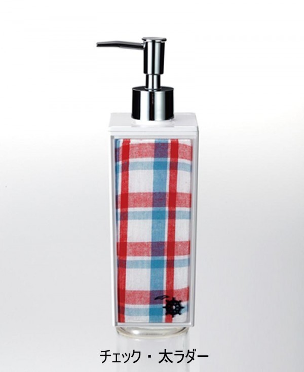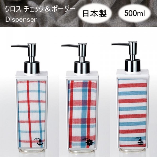 布地をディスペンサーに挟み込み、布の風合いを生かしたとってもおしゃれなディスペンサー。普段着感覚で選んでみてください。 製造国:日本 素材・材質:本体:AS樹脂ポンプ:ABS樹脂パイプ:ポリエチレン布:綿+麻 商品サイズ:66×66×213mm 仕様:容量:500ml ※サプライヤー直送品  ご注文後、当日~1営業日後の出荷となります【商品名】日本製 クロス チェック&ボーダー 角型 大 詰替用ディスペンサー 白 チェック・太ラダー・14-452653