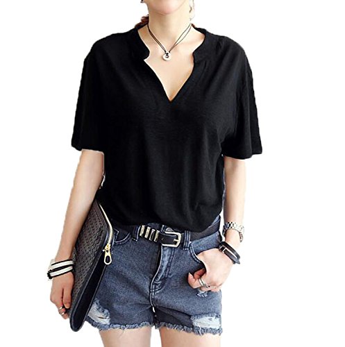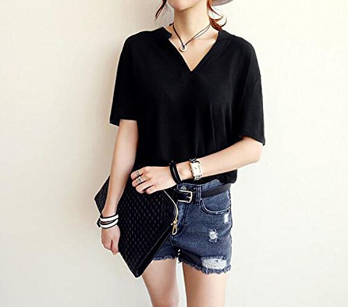Eonza 레이디스 컷소우 넉넉하게 T셔츠 반소매 심플 무지 톱스 하흑백 큰 사이즈