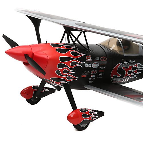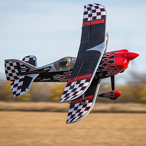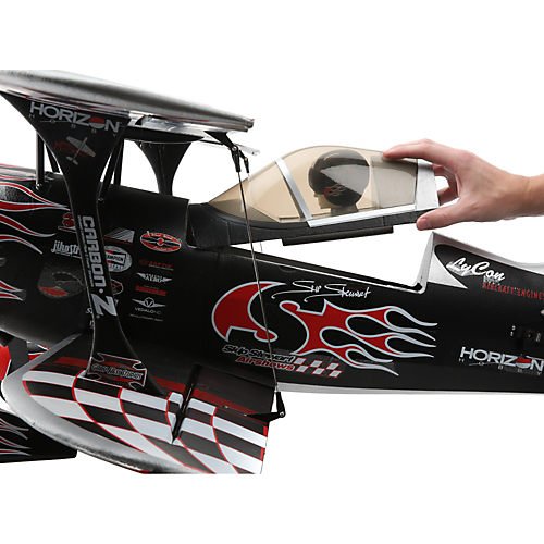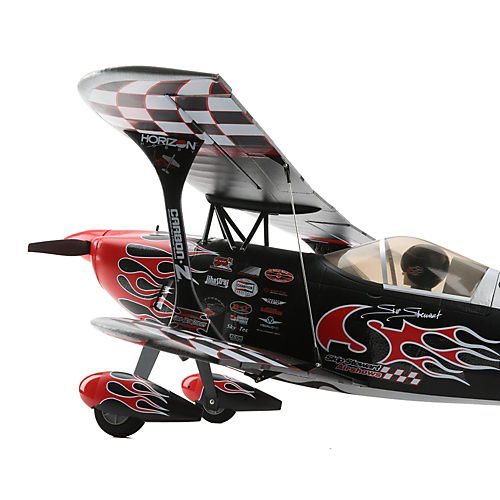 Overview From his performance of the world's smallest loop to being the only air show pilot to combine aerobatics with motocross by flying his P2 Prometheus under a jumping motorcycle, Skip Stewart brings dare-devil creativity to precision aerobatics. Coined "High-Octane Aerobatics," Skip's performances offer an appetizing menu of stunts that blanket the horizon with mind-blowing agility at an energy level that packs airshows around the globe with cheering fans. The E-flite® Carbon-Z® P2 Prometheus aircraft is for aerobatic pilots who want precision in an unlimited biplane with unique character. Based on the custom built P2 Prometheus airplane flown by Skip Stewart, Mike McConville adapted the unique design as a model with performance that's as inspirational as Skip's original. Exclusive Carbon-Z technology allows a healthy sized model such as this to be rigid like a conventional all-wood airframe, yet lightweight so it can have a larger performance envelope than any other biplane in its class 0