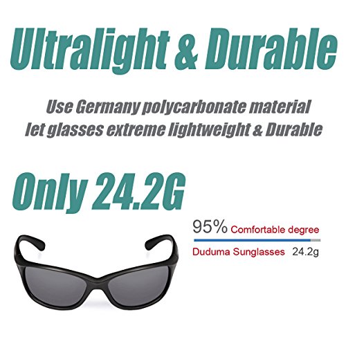Studio : Duduma Publisher : Duduma Binding : Eyewear Product Description DISCOVER THE DUDUMA DIFFERENCE Provide The Best Quality Sunglasses and Customer Service on Amazon ? The super light TR90 frame: You can hardly feel them on your face, yet they are unbreakable! ? TR90 frame for the most comfortable fit available today in addition to unparalleled durability. ? Great fashion frame design for golf, cycling, running, fishing and all active outdoor lifestyles. ? 100% UV protection lens. FEATURES AND BENEFITS ? Fashion and stylish design ? Polarized lens help restore true color ? Polarized lens help eliminate reflected and scattered glares ? Works good in wind ? Good for sports or other outer door activities ? Lifetime Breakage Warranty on Frame Lens ? 30 Day Money Back Guarantee INCLUDES 1*Cleaning soft cloth 1*Cleaning soft fabric sunglasses pouch CARE To avoid damage, never clean your sunglasses with paper towels or clothing, and also avoid using household detergents or soaps. While a few mild soaps don't harm lenses, today's extra strength soaps are powerful enough to slowly disintegrate lens coatings. [TIP!] Great gift idea [TIP!] Check out our other sunglasses: http://www.amazon.com/shops/Duduma 100% Satisfaction Guarantee. Try risk free. ADD TO CART RIGHT NOW!