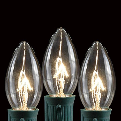 Enjoy our retro fit tradional C9 light set with a 100' White wire string and 125 transparent C9 light bulbs during the holidays, on your patio, gazebo, pergola, wedding, or special event. This light set is commonly referred as "retro" because it will remind you of the old fashioned type Christmas lighting that you would use on house or Christmas tree reminiscent of the 1950's holiday decorations. Still classic to this day!!!