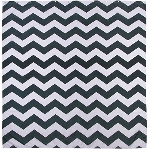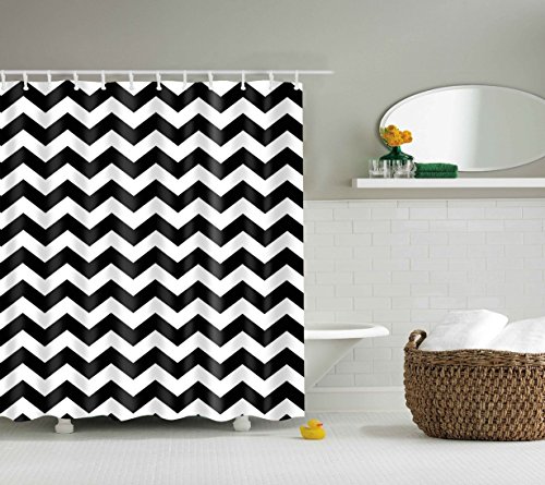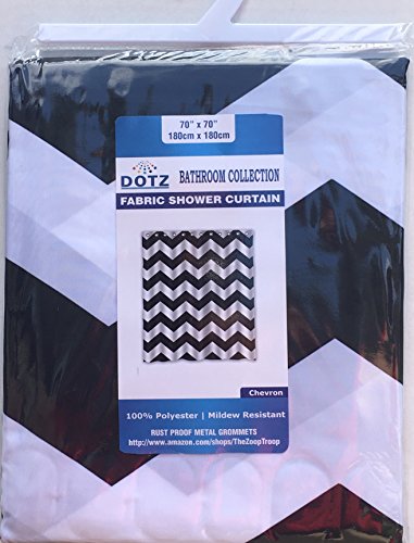 DOTZ Chevron Shower Curtain - Black and White Polyester Fabric - 70 inch x 70 inch, includes 12 plastic shower rings