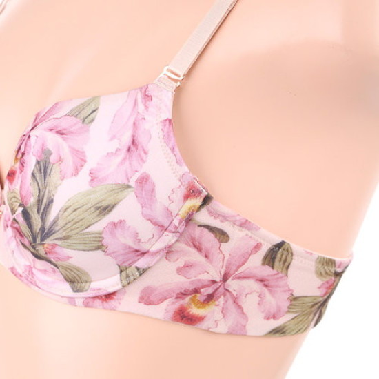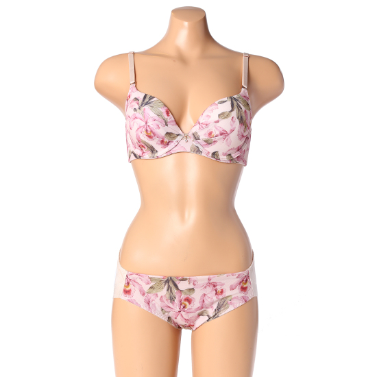 S/S 트랜드인 꽃프린트 원단. 화려한 프린트가 포인트인 제품입니다싱그럽고 산뜻한 프린트로 화사하게 시선을 사로잡을 3/4컵 몰드브라와 풀슬립 세트군으로,