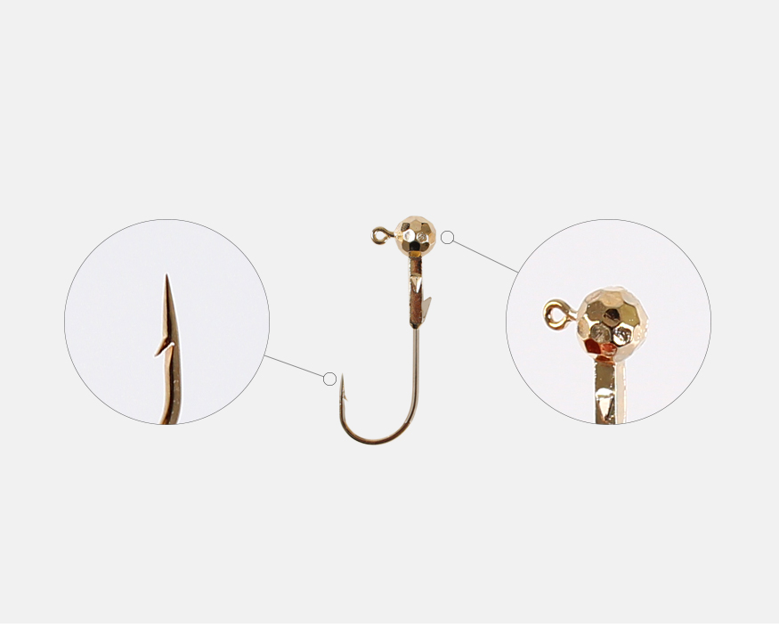각진 헤드는 빛반사에 따라 반짝반짝 빛나 유인성이 뛰어나며날카롭고 강한 바늘은 한번 물면 놓치지 않습니다.