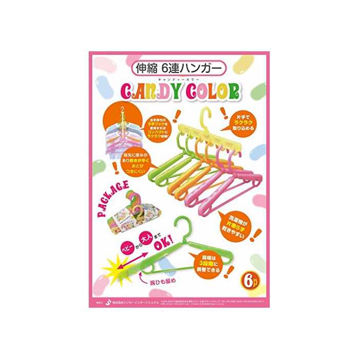원본상품명: シンセ?インタ?ナショナル 伸縮6連ハンガ? キャンディカラ? 肩幅は3段スライド式