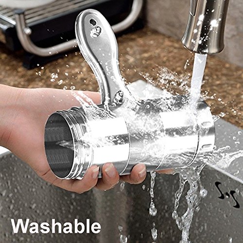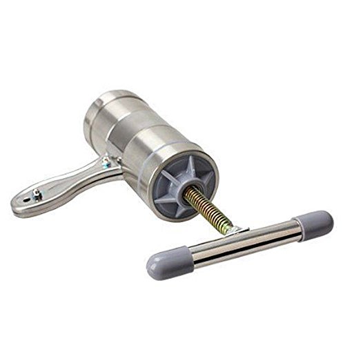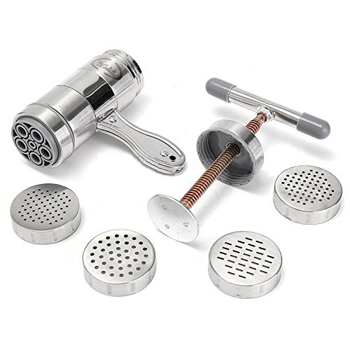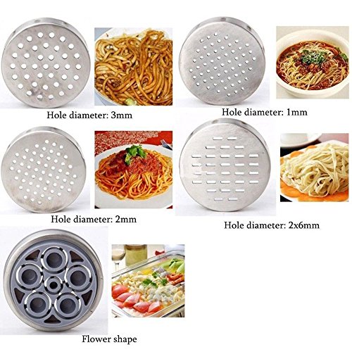 Product Description100% Brand new and high quality Color: As shown in the picture Material: Mainly Stainless steel Noodle machine height: Approx. 18cm; Drum height: Approx. 14cm; Diameter: Approx. 6cm; Inner hole: Approx. 5cm Package Included: 1 x Noodle Press Machine 5 x Noodle Mould0