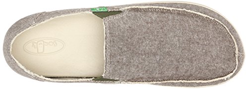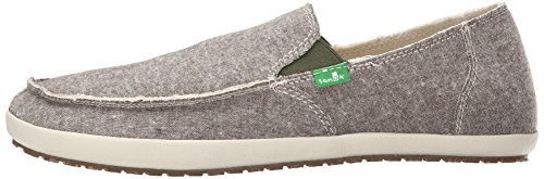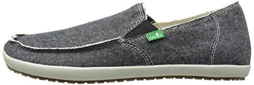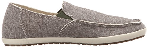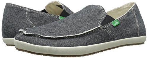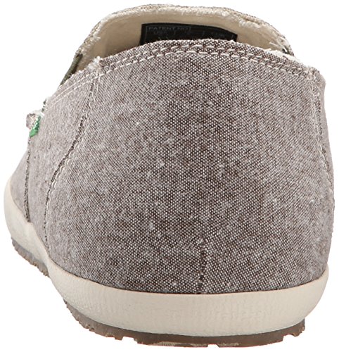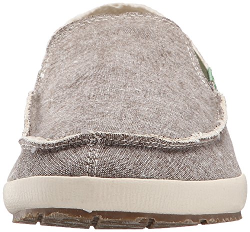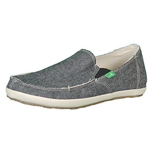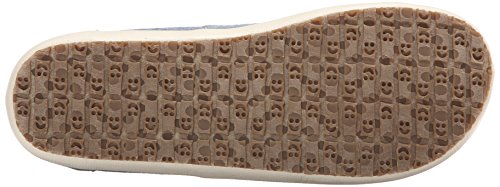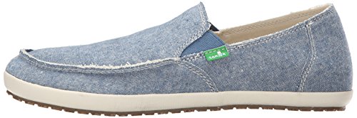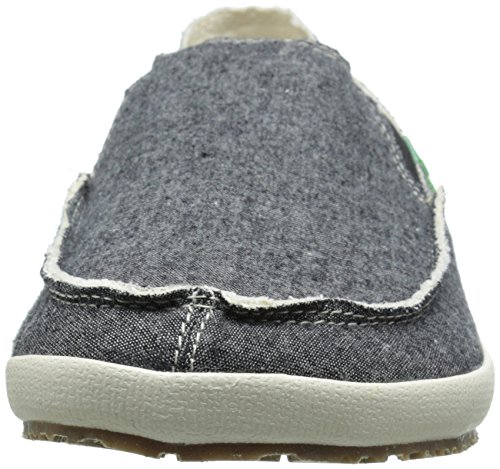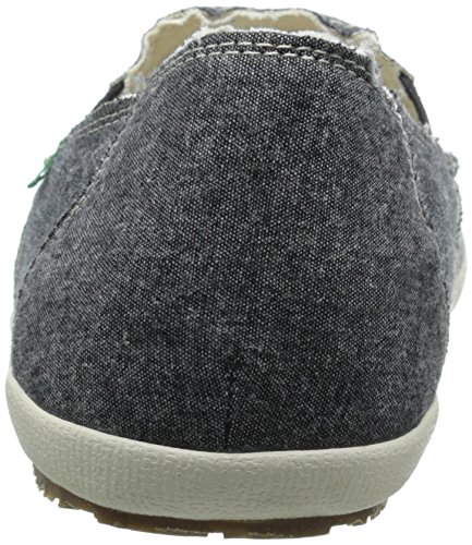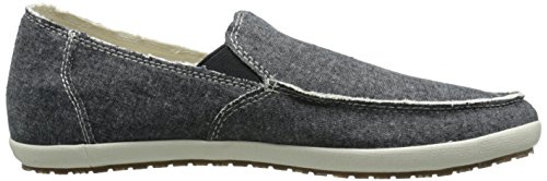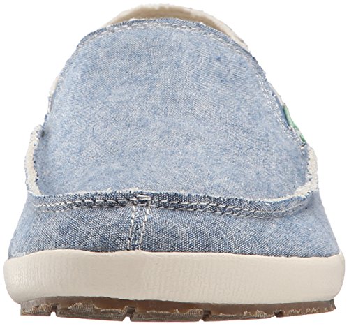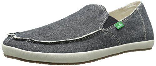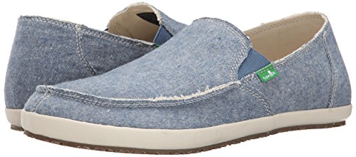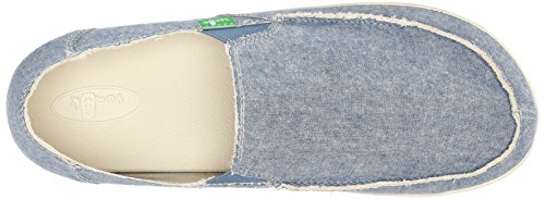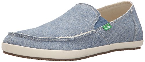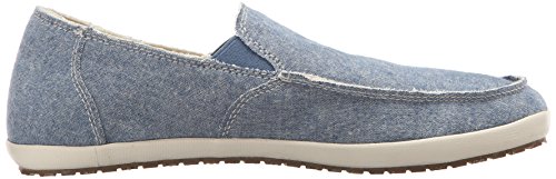 Chambray upper with frayed edges on a wider profile slip-on construction