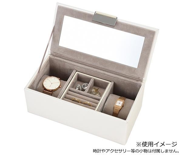 | ほのかに甘さ漂うモノトーンでまとめたユニセックスなデザインのアクセサリーケースは、夫婦や恋人などカップルで一緒に使用するのもおすすめです。ホワイトのフェイクレザーとライトグレーのベルベットは、どんなアクセサリーにも馴染みつつシンプルなデザインなので、アクセサリーが一層映えます。1人でも2人でも使う楽しみが広がるアイテムです。 |