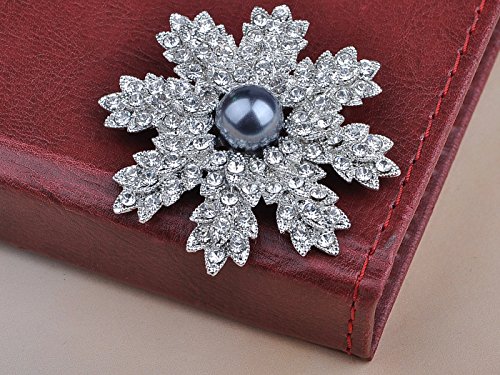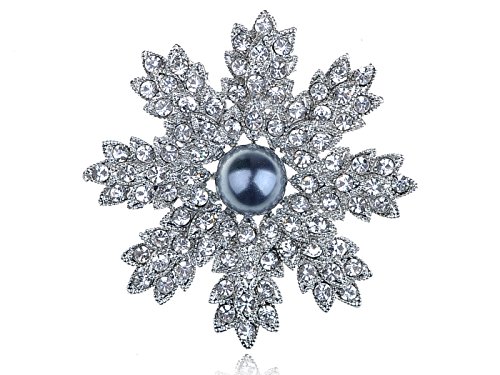 Stunning Clear Crystal Rhinestone Faux Pearl Christmas Snowflake Pin Brooch Great for all occasions, you can't go wrong with this piece!