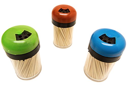 TOOTHPICK HOLDERS: These multi colored toothpick holders are perfect for your guests and party members to use after dinner. Each display container comes fully stocked with toothpicks.