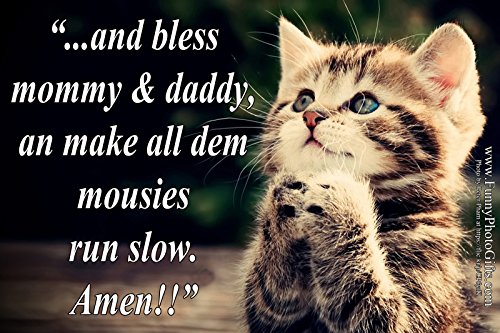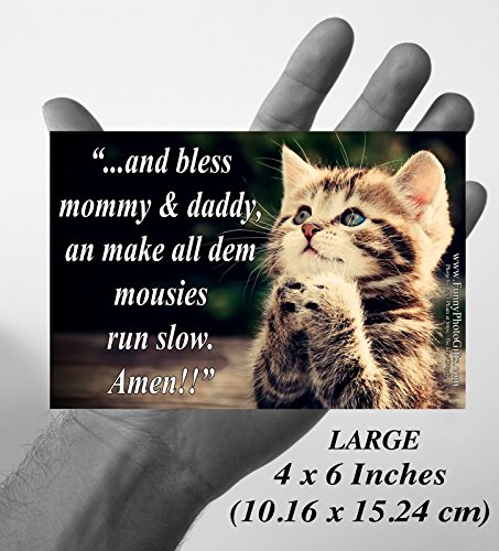 1 Large Magnet ~ PRAYING KITTEN ~ refrigerator fridge magnet, approximately 4x6 inches (10.16 x 15.24 cm) —kitten prays for mousies mice to run slowly, tabby cat