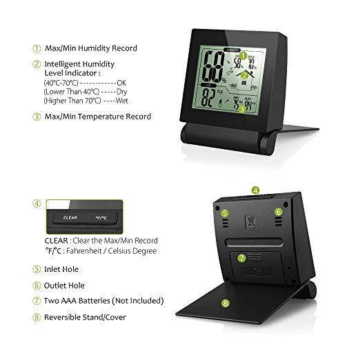 -. Brand : Habor -. Color : Black -. EAN : 0632423399975 -. Feature : LARGE DISPLAY SCREEN: 3.2 inches super large LCD humidity monitor shows instant and current temperature; Anytime, anywhere can be a temperature check. / WIRELESS CONVENIENCE: With the built-in sensor and inlet/outlet hole, there is no need to charge it when using. This wireless design makes it easy to move from room to room which is quite convenient. / 24HRS AUTO CLEAR: Normally, the hygrometer monitor will automatically clear the maximum and minimum record after 24 hours for showing exact and current temperature and humidity. Customers can press the CLEAR button for 2s to clear the record. / ENERGY SAVING: Customers can control the AC or the air dryer to adjust the indoor temperature based on the current temperature and humidity which can save a lot of electric bills. / MAX/MINI RECORD: Auto records the maximum and minimum humidity and temperature and monitor indoor and outdoor temperature over 24 hrs. (Show in Fahrenheit or Celsius) -. Label : Habor -. Manufacturer : Habor -. ProductGroup : Home -. ProductTypeName : OUTDOOR_LIVING -. Publisher : Habor -. Studio : Habor -. Title : Habor Digital Wireless Hygrometer Thermometer Monitor Temperature and Humidity Sensor for Indoor Use -. UPC : 632423399975