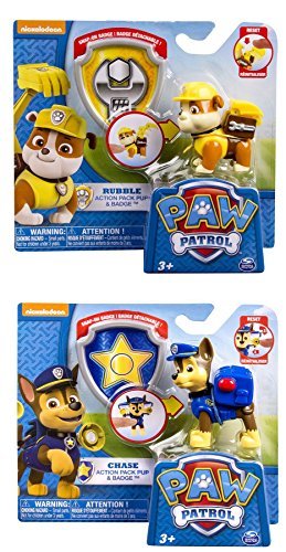 -. Title : PAW PATROL BUNDLE - CHASE ACTION PUP PACK WITH BADGE AND RUBBLE ACTION PUP PACK WITH BADGE - 2 ITEMS SUPPLIED(Dispatched From UK)
