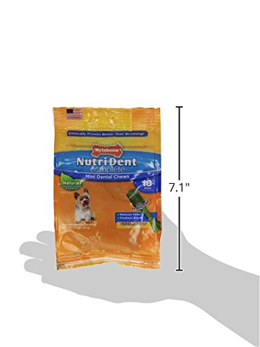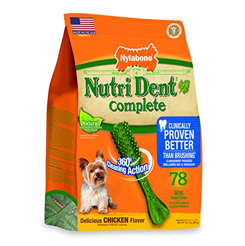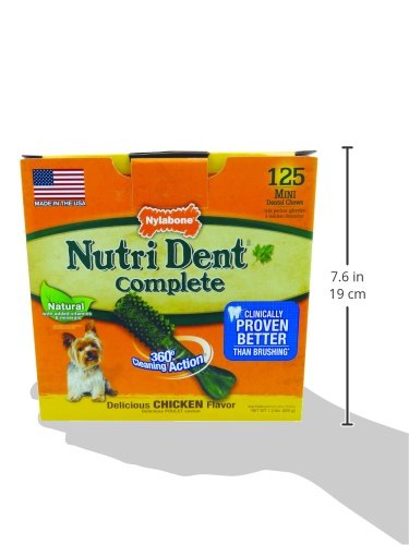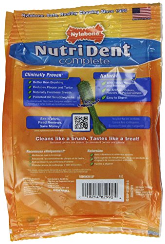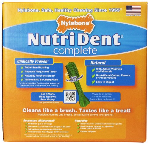 -. Binding : Misc. -. Brand : Nylabone -. Feature : New and improved formula with proprietary plaque & tartar fighting ingredients are proven to be better than weekly brushing / Natural ingredients formulated to be highly digestible / Made in the USA / Keep 'em Healthy -. Label : Nylabone -. Manufacturer : Nylabone -. MPN : NTD802M18P -. PackageQuantity : 1 -. PartNumber : NTD802M18P -. ProductGroup : Pet Products -. ProductTypeName : PET_SUPPLIES -. Publisher : Nylabone -. Studio : Nylabone -. Title : Nylabone Nutri Dent Complete Dog Treat Bones for Petite Dogs up to 15 Pounds