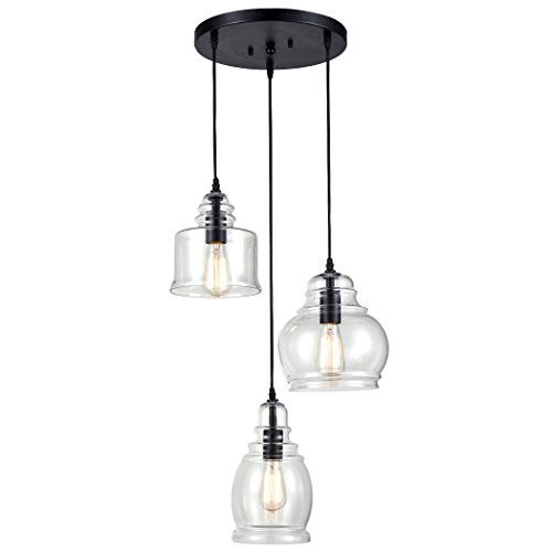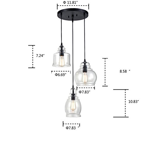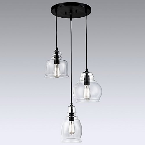 CLAXY Ecopower Vintage Kitchen Linear Island Glass Chandelier Pendant Lighting Fixture-3 Lights