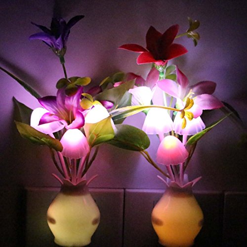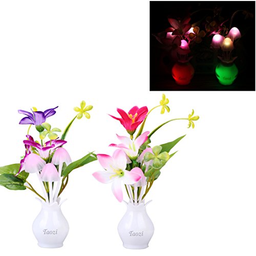 Taozi 2 PCS Kids Night Light Bathroom Kitchen Bedside Wall Light Lamp Color Changing Plug In LED Mushroom Flower Nightlight (Cream)