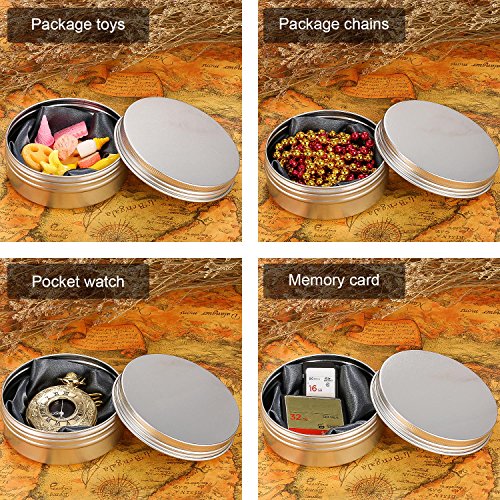 Feature: the screw cans are made of aluminum, durable and lightweight; With screw opening design, they are easy to open and close which is suitable for various occasions to store different items