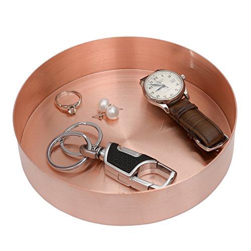 CKLT Nordic Multiduty Circular Copper Tray Bathroom Tray Key Jewelry Cosmetics Tray It's On The Table Small Items Storage Pallet Decorations (red copper-straight14cm)