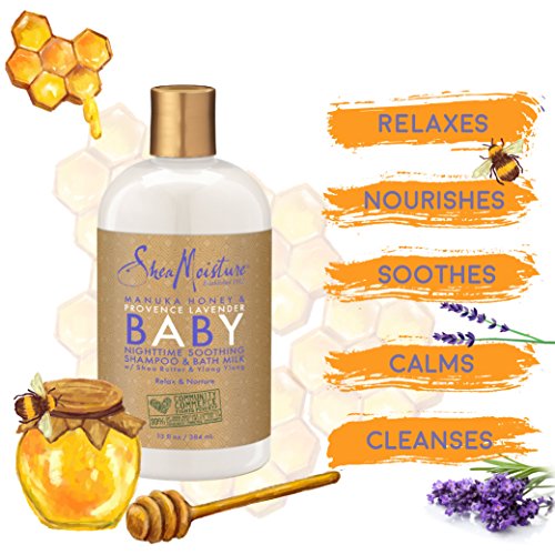 Shea Moisture Manuka Honey & Provence Lavender Baby Nighttime Soothing Shampoo & Bath Milk for Kids, 13 Ounce