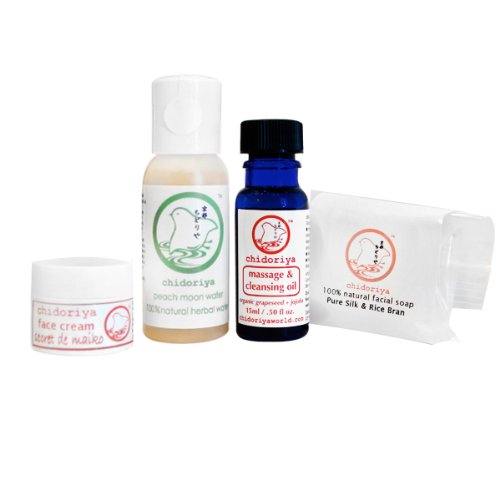 Each kit contains: Mini Facial Soap 0.5oz. Mini Peach Moon Herbal Water 1oz. Mini Massage & Cleansing Oil 15ml Mini Face Cream- Secret de Maiko 6ml