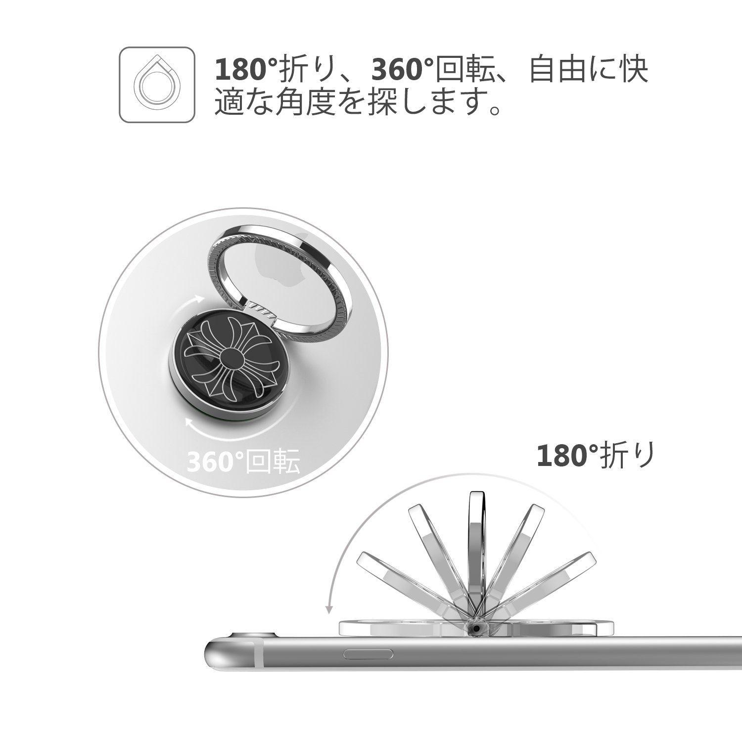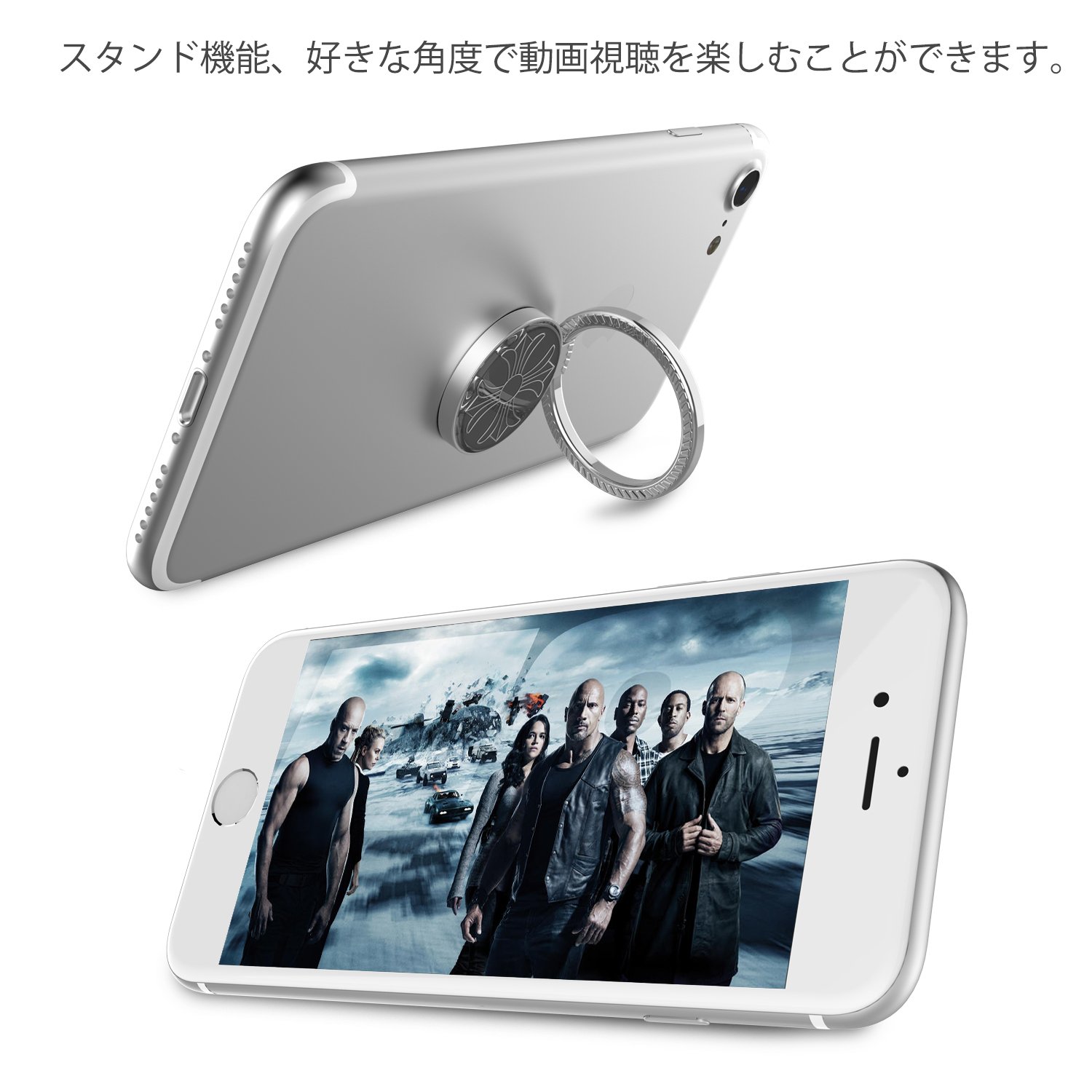 Stand function: By setting up the ring part, it becomes a smartphone stand that can be placed vertically and horizontally freely.
