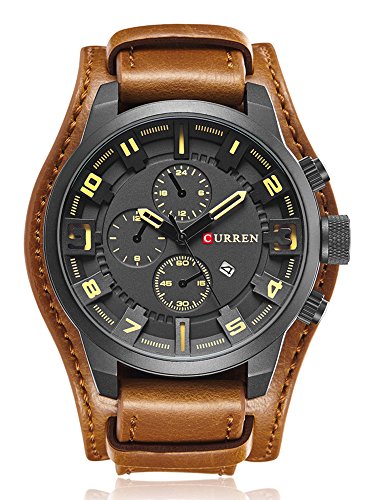 CUEEEN 손목시계 맨즈 멋쟁이 캐주얼 아날로그 날짜 30M방수 레더 벨트 쿼츠