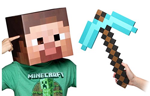 -. Feature : Each Set includes: (1) Blue Diamond Foam Pickaxe and One (1) Character Costume Head / Pick your Path: Steve, Creeper, Enderman, Skeleton, Alex / Get in the game! -- Perfect for both Children or Adults / 12" x 12" x 12" Costume Head (One Size Fits Most) / Official Minecraft Merchandise