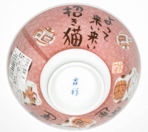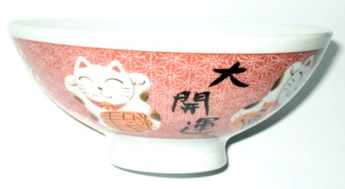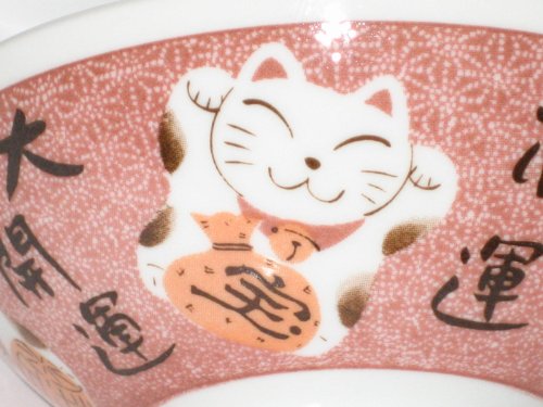 Rice Bowl Maneki Neko Lucky Cat Pink - Microwave Sae
