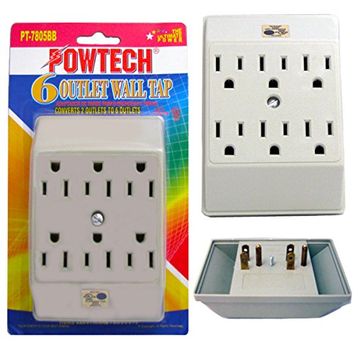 POWTECH 6 Outlet Extender Wall Adapter - Heavy Duty Grounded Wall TAP -Designed to cover existing grounded duplexes only7805BB