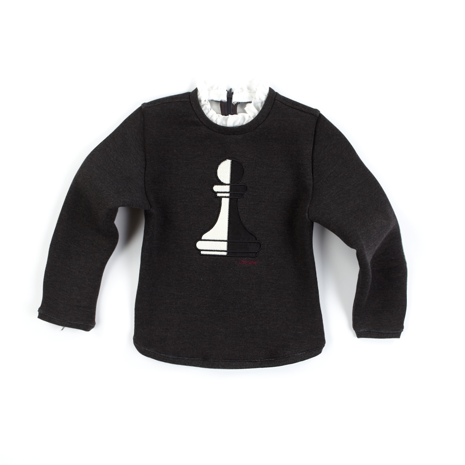 차콜그레이컬러의 본딩 스웨트셔츠 아이템입니다. 본딩 소재로 깔끔하게 떨어지는 핏이 세련되어 보이며 목부분의 아이보리 컬러의 프릴 처리가 클린해보입니다. 체스판 아플리케 포인트가 유니크 하면서도 클린해 보이는 티셔츠입니다. BQ62SK01CG와 셋업되는 티셔츠로 스커트와 함께 연출하면 원피스처럼 셋업되는 매력적인 아이템입니다. | |||||||||||||