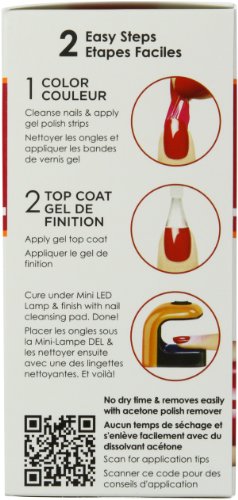 Salon insta-gel strips. 2 easy steps. Up to 2 week wear. Chip resistant. Mirror shine. Must use with mini LED lamp - sold separately . Will not damage nails. Apply color. Apply top coat. Cure under mini LED lamp which is included.