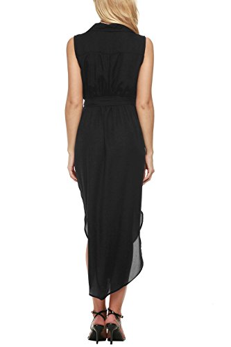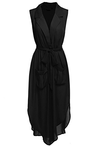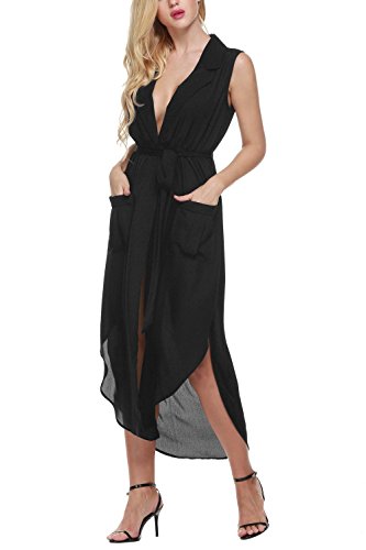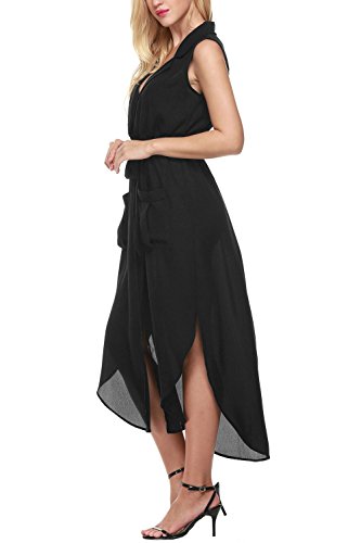 -. Title : Bluetime Women Summer V Neck Tie Waist Sleeveless Slit Chiffon Long Shirt Dress