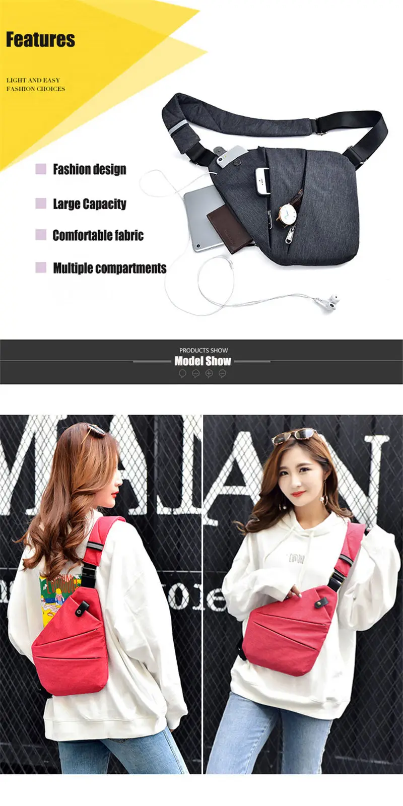 waterproof oxford cloth:Spring Compact One Shoulder Chest Bag for Men Waterproof