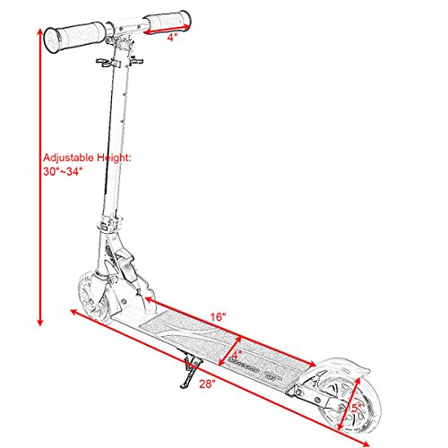 -. Brand : Goplus -. Feature : 【Durable Material】All frames of Goplus kids kick scooter are made of sturdy aircraft-grade aluminum, which makes the weight capacity of this scooter is up to 154lbs, perfect for riders ages from 4 - 13. / 【Rear Brake for Quick Stop】Goplus kick scooter features an easy to access rear brake which when pressed brings the scooter to a speedy secure stop. Large aluminum reinforced brake pedal is easy to use for quick and firm breaking fast. / 【LED Light-up Rear Wheel】The wheels made of anti-abrasive and shock-absorbing Polyurethane and light up as rolls around which creating attractive and smooth glide. / 【Wide Deck】16" * 4" deck is wide enough for two feet, so kids can switch from pushing to just enjoying the ride. Low-to-the-ground design makes it easy for little ones to easily and confidently hop on and off. / 【Folding and Height Adjustable】This kick scooter is easy to fold for storage and carring. The handlebar height adjust from approx. 30 inches to 34 inches, can meet requirements from kids with different age. -. IsAutographed : 0 -. IsMemorabilia : 0 -. Label : Superbuy -. Manufacturer : Superbuy -. MPN : kick scooter -. PartNumber : kick scooter -. ProductGroup : Sports -. ProductTypeName : OUTDOOR_RECREATION_PRODUCT -. Publisher : Superbuy -. Studio : Superbuy -. Title : Goplus Folding Kick Scooter for Kids Deluxe Aluminum 2 Wheels Glider Adjustable Height with LED Light Up Rear Wheel for Girls and Boys