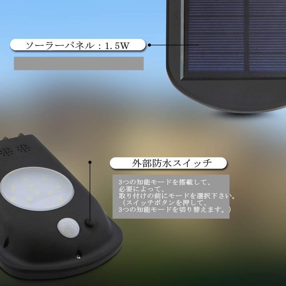 ① Always on light mode: When it gets dark it automatically lights up, and it provides strong and bright light until accumulated power is cut off.