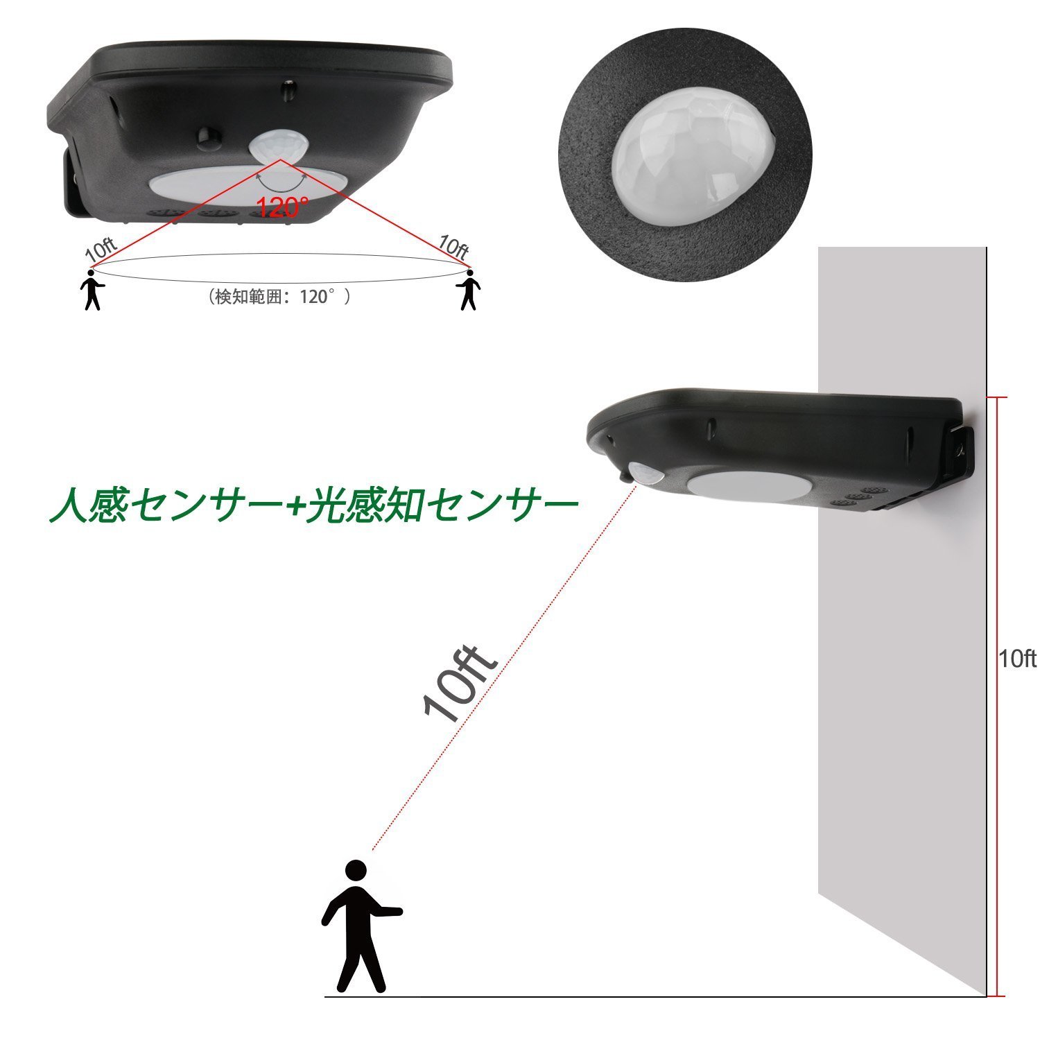 ③ Strong optical sensor mode: It is normally turned off, and when a person approaches, it glows for 30 seconds with the same light intensity as ① and turns it off automatically.