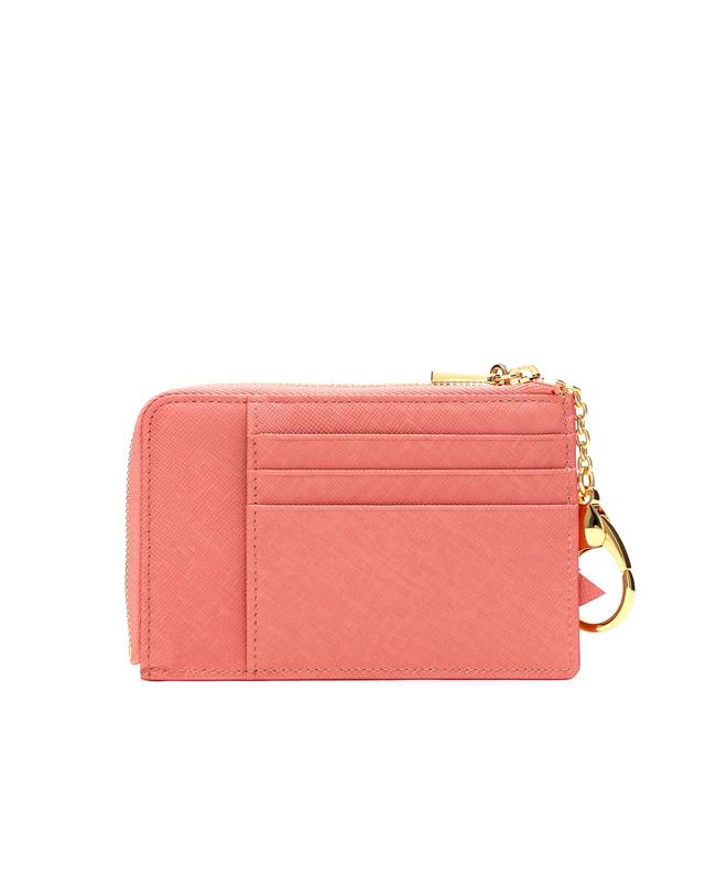 심플한 소가죽 바탕에 골드 로고와 참 장식으로 포인트를 준 동전지갑 형 카드지갑 입니다.