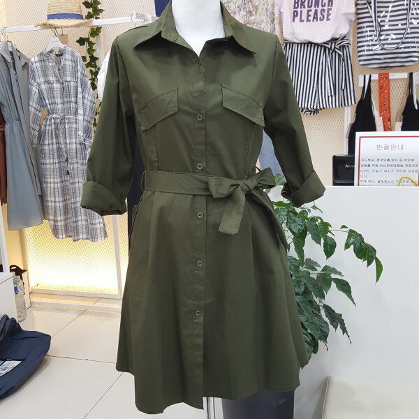 셔츠형 벨트원피스입니다.오픈하실경우 초가을 트렌치코트로 활용도가능한 스타일입니다~(총장은88cm입니다)