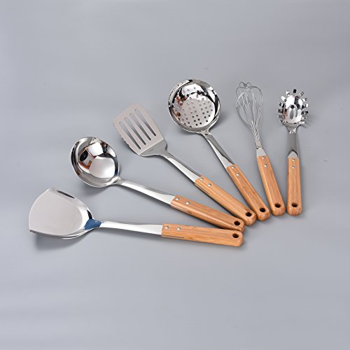 -. Title : 6pc utensil set bamboo Utensil set stainless steel utensil set