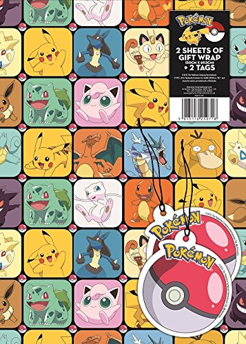 (Gemma)/Stationery Party Supplies/Gift Wrapping Supplies/DIRECT FROM USA/Pokemon 2 sheets Of Gift Wrap And 2 Gift Tags