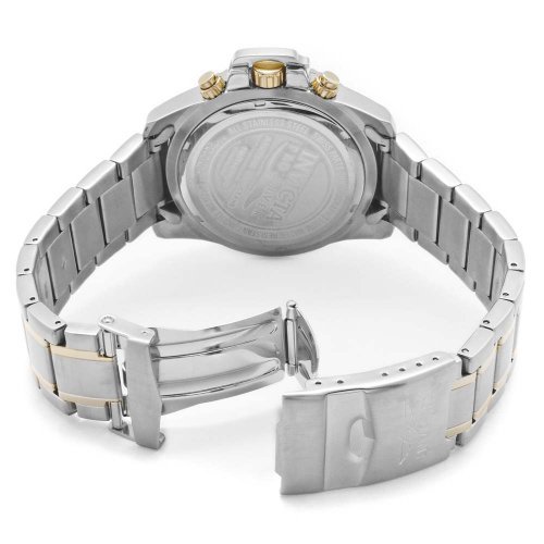 -. Binding : Watch -. Brand : Invicta -. Color : black -. Department : mens -. EAN : 0886678112852 -. Feature : Quartz movement / Flame-fusion crystal; stainless steel case and bracelet with 18k gold ion-plated center links / Chronograph functions with 30 minute, 60 second and days of the week subdials; date window / Black carbon fiber dial with gold tone and white hands, gold tone hour markers; luminous; unidirectional 18k gold ion-plated stainless steel bezel; protective clasp on crown / Water resistant to 330 feet (100 M): suitable for snorkeling, as well as swimming, but not diving -. Label : Invicta -. Manufacturer : Invicta -. Model : 11285 -. MPN : 11285 -. PackageQuantity : 1 -. PartNumber : 11285 -. ProductGroup : Watch -. ProductTypeName : WATCH -. Publisher : Invicta -. ReleaseDate : 2012-04-13 -. Studio : Invicta -. Title : Invicta Men's 11285 Pro-Diver Chronograph Black Carbon Fiber Dial Two Tone Stainless Steel Watch -. UPC : 886678112852