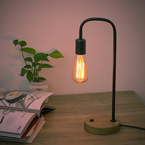 HAITRAL Desk Lamps Imitation Wood Metal Accent Lamp for Office Home Lighting Black