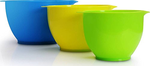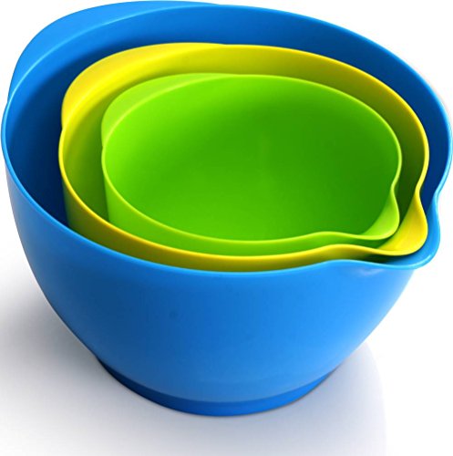 The non-slide rubber treated base of the mixing bowls will make your life simple as you can now blend your cakes utilizing an electric mixer or by hand without the danger of slipping or sliding on the table top