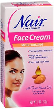 For Upper Lip, Chin, and Cheek. With Sweet Almond Oil & Baby Oil. Nair Cream for Face effectively removes unwanted hair from your face. This special formula contains Sweet Almond Oil and Baby Oil and leaves your skin silky smooth and invitingly touchable. Like all Nair Hair Remover products, Nair Cream for Face is dermatologist and salon tested. Moisturizes skin as you see it. Easy to use. Fresh fragrance. For all hair types, fine/light to coarse/dark. Not animal tested. Made in USA.Feature