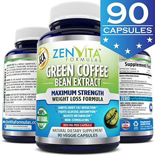 -. Feature : ✔✔✔ ZenVita Formulas Pure Green Coffee Bean Extract is made with the Clinically Proven GCA® Green Coffee Antioxidant (Standardized to 50% Chlorogenic Acids). / ✔✔✔ Our Green Coffee Bean Extract is a Non-stimulating / Decaffeinated / All Natural Weight Loss Supplement / ✔✔✔ Our Green Coffee Bean Extract provides up to 2,400 mg Green Coffee Bean Extract Per Day / 800 mg Per Veggie Capsule / 90 Capsules Per Bottle / ZERO Additives, Artificial Ingredients, Binders, Fillers and Preservatives. Made in USA to FDA Specified cGMP Standards using only Top-Quality Ingredients - Consistent Quality Assured! / ✔✔✔ Green Coffee Bean Extract Slows the Release of Sugar into the Bloodstream* / Boosts Metabolism* / Burns Fat*★ / ✔✔✔ 100% Money Back Guarantee! Lose Weight with ZenVita Formulas Green Coffee Bean Extract Or You Get Your Money Back - NO Questions Asked!