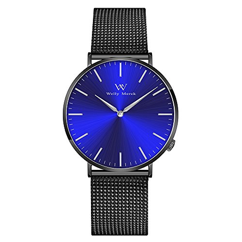 -. Title : Welly Merck メンズ腕時計 人気ランキング 高級ブランド スイスブランド 42MMブルー文字盤 スイス製クォーツ サファイアガラス 20MM ブラック メッシュバンド 交換可能 5ATM防水