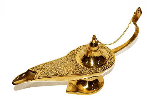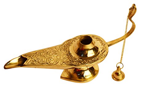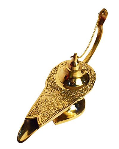 100% Pure Brass 6 INCH Aladdin Oil Lamp Genie / Ornate Chirag - Golden-Tone Brass - Vintage Toys & Gifts For Kids / Costume Party Home Decoration