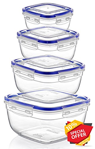 Lock&Fresh BPA Free Plastic Sealed food Storage Container Set 4 pcs 17 oz. - 82 oz.