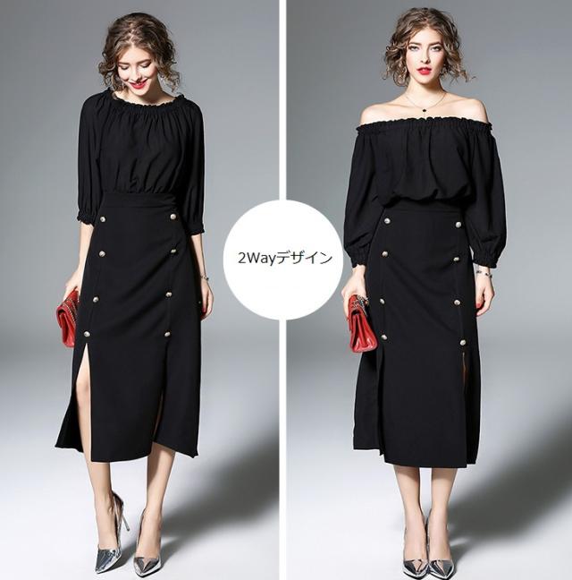 トップス部分はオフショルダーとしても着用可能な2Wayデザインになっています。