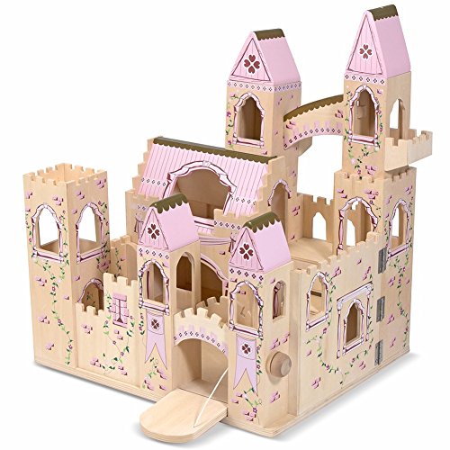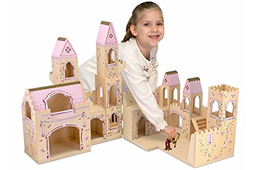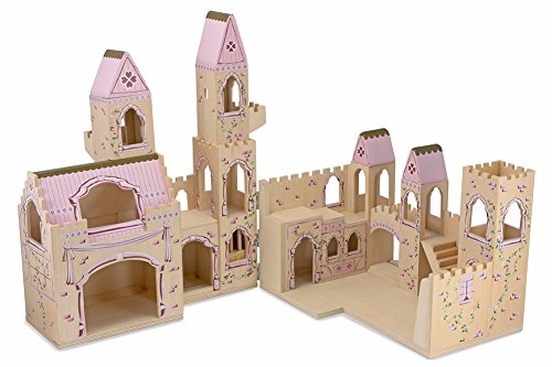 - Hinged wooden castle opens for expanded pretend play